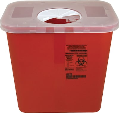 Covidien Sharps Plastic Container, 2-Gallon Container with Rotor Lid, Red (SRRO100970)