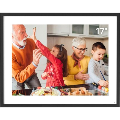 Share your photos videos, music, and slideshows with family and friends using the 17" Wi-Fi HD Large Digital Frame from Cozyla. This frame has a 17" IPS display with a resolution of 1280 x 960 and a 4:3 aspect ratio.