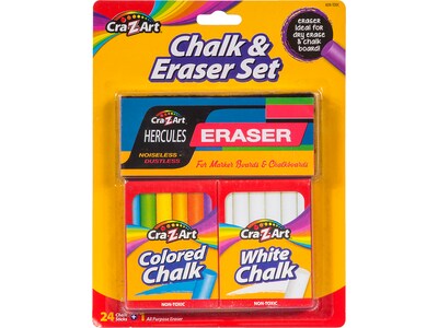 Cra-Z-Art Chalk Sticks with Eraser, Assorted Colors, 24/Set (10874-24)
