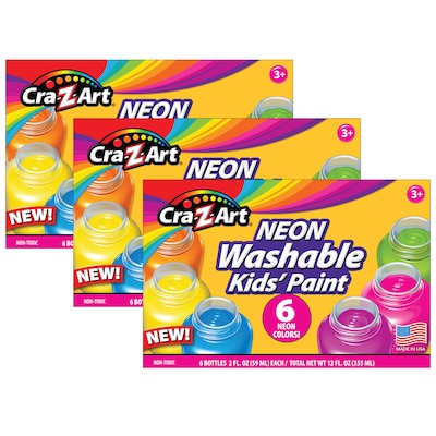Cra-Z-Art Neon Washable Kid's Paint, Assorted Colors, 2 fl. Oz., 6/Set, 3 Sets (CZA106466-3)