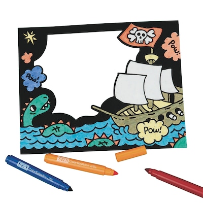 Craft Express Velvet pirate frame craft kit includes frames with markers and features a photo space of 6 1/2" X 5 1/2", sold as 12 per pack.