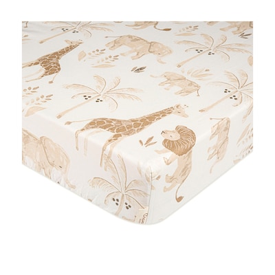 What do you think your baby dreams about while they sleep" Perhaps adventuring with their favorite animals" If so, this is the crib sheet for their nursery. Part of our Kendi collection, this fitted crib sheet features softly watercolor safari animals such as lions, elephants, and giraffes in beautiful natural shades. It’s the perfect comfortable touch to your baby’s nursery because our beautiful crib sheets soften with every wash–keeping your baby happily dreaming about their whimsical animal friends.