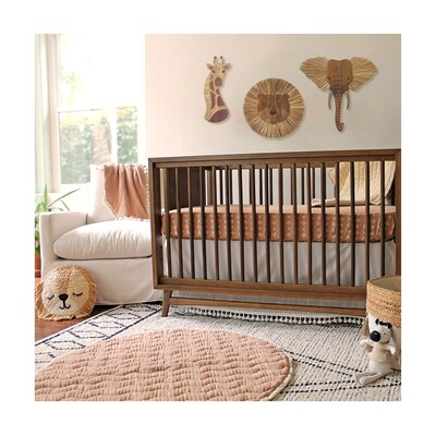 Our elephant wall decor is the perfect addition to any nursery. It features an adorable yet peaceful elephant handmade from beautiful wood. It looks best when paired with our lion and giraffe wall decor. Handmade details paired with the natural materials of these pieces perfectly compliments our Crane Baby bedding sets for a curated look.The charm and elegance of this nursery wall decor makes it a must-have for any safari or animal themed nursery