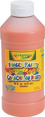Crayola® Washable fingerpaint in orange color ideal for ages 5 yrs and up comes in a 16 oz capacity bottle that is made using plastic. Paint with bright colors can wash easily from skin as well as from cloths and does not crack/rub off when dry.