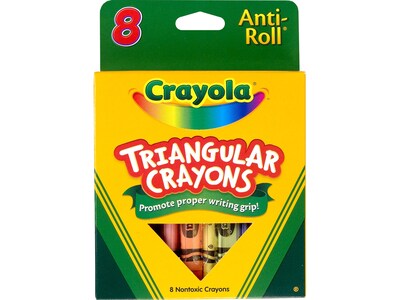 - Anti-roll triangular crayons help promote proper writing grip when kids are learning to form letters and color pictures