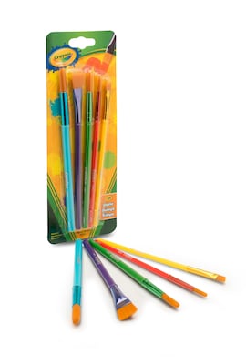 Perfect for the classroom or at-home craft rooms, this set of five kids paintbrushes was designed to last. Take on a variety of arts and craft projects with a different brush type for every need. Thoughtful details, such as color-coded barrels and a compact handle size, make them easy for small hands to use. Pair them with Crayola Washable Paints (sold separately) for a great bundled gift idea. Paint sets for kids often don't include a variety of different brush types. This handy 5 piece set makes it easier for little artists to create detailed works of art with just the change of a paint brush!