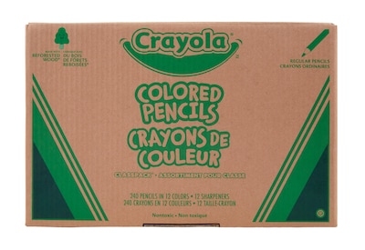 Teachers will have their entire class coloring with this supersized assortment of 240 Crayola Colored Pencils in one bulk Classpack. Stock up on these teaching supplies that are boxed and conveniently organized by the 12 assorted colors (with 20 pencils of each color!). Kids and students alike will love using these bright art tools to color and create. Featured colors include White, Black, Brown, Violet, Blue, Sky Blue, Green, Yellow Green, Yellow, Orange, Red Orange, and Red. Be prepared for school projects, seasonal crafts, and other creative projects with classic coloring pencils for kids. Ideal for ages 5 and up.