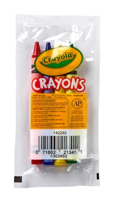 Give the young and young at heart a creative outlet with these classic crayons. Each of the 360 cellophane pouches includes red, blue, yellow, and green Crayola crayons, enough to do justice to almost any coloring book or drawing. Crayons are double wrapped for durability and packed for easy distribution in a playroom, restaurant, party, or other group setting.