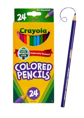 Crayola® Colored pencil in assorted colors provide smooth, scratch-free rich coloring. Pencil with 3.3 mm core feature wood barrel nontoxic lead for safety usage, sold as 24 per box.