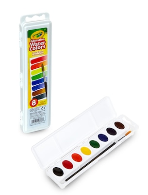 The watercolor semi-moist formula glides smoothly onto your brush in true hues that don t fade away when water is added giving you strong coverage and great color mixing with 8 assorted colors.