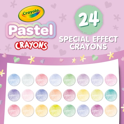 - Crayon box includes 24 vibrant & pearlescent Crayola Pastel Crayons.
