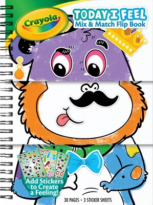 The Crayola Today I Feel Mix & Match Flip Book gives toddlers and kids the confidence they need to express how they are feeling through coloring. It is often difficult for young children to articulate their emotions and to understand why they act the way they do. This spiral-bound book features 30 pages for toddlers to add their artistic flair to while learning to effectively express their emotions. Kids will love coloring, drawing, and embellishing pages with stickers, while having fun mixing & matching the cute animal characters. Once they're done coloring, this feelings flip book is perfect to use again and again to help kids articulate those hard-to-understand emotions in a fun and easy way. This makes a great gift for toddlers and young kids, ages 3 & up.