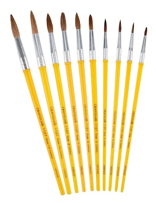 Get ready to create beautiful watercolor paintings with high-quality paint brushes designed for use with a variety of watercolor paint sets! This Crayola Camel Hair Watercolor Paint Brush Set includes natural hair brushes. Camel Hair Watercolor Brushes are the ideal tool to create smooth, colorful arts and crafts and any variety of activities, hobbies or school projects. Each brush head includes a blend of camel hair to meet all of your project needs. This set includes 7/16” paint brushes. Additional 12 packs in a range of sizes are sold separately.