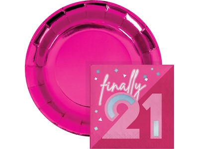 Creative Converting 21st Birthday Plates and Napkins Kit, Hot Pink (DTC9122E2I)