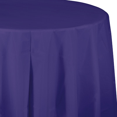 The Purple Round Plastic Tablecloths make set up easy and clean up a breeze for any celebration