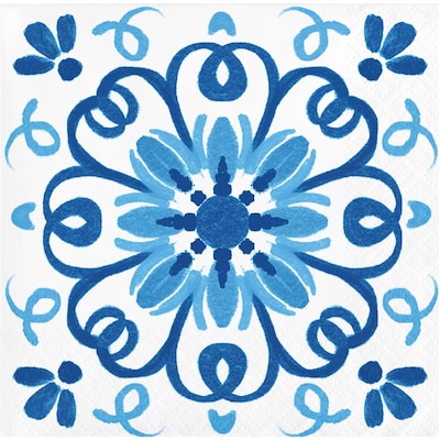 - The napkins feature an elegant blue and white design that's inspired by blue and white Mediterranean tiles