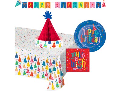 Creative Converting Hats Off Birthday Tableware and Decor Kit, Assorted Colors (DTC9127E4A)