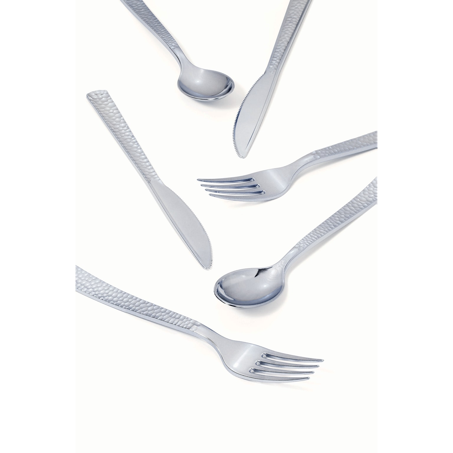 Creative Converting Metallic Silver Hammered Assorted Plastic Cutlery, 288/Pack (339401)