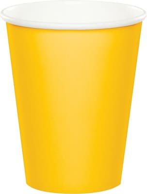 Able to handle both hot and cold beverages, our School Bus Yellow Cups are a budget-friendly way to add a little style to the table display. The paper cups hold 9 oz. and are perfect for festive party punches as well as coffee and tea service at big get-togethers or family meals. The sturdy cups are sold in packages of 72 and coordinate perfectly with other tableware selections from the complete line of School Bus Yellow party supplies.