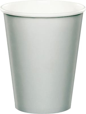Able to handle both hot and cold beverages, our Shimmering Silver Cups are a budget-friendly way to add a little style to the table display. The paper cups hold 9 oz. and are perfect for festive party punches as well as coffee and tea service at big get-togethers or family meals. The sturdy cups are sold in packages of 72 and coordinate perfectly with other tableware selections from the complete line of Shimmering Silver party supplies.