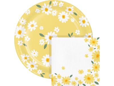 Creative Converting Sweet Daisy Party Plates and Napkins Kit, Yellow/White (DTC9128E2G)