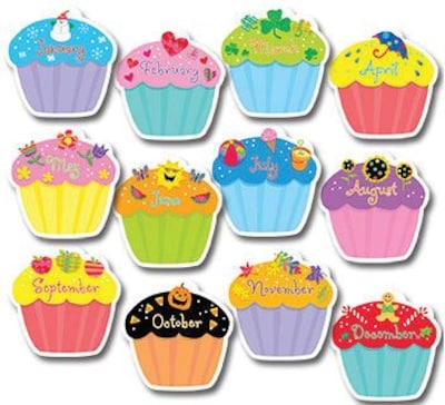 These versatile jumbo cut-outs are perfect for enhancing bulletin boards, highlighting student work, making covers for class books, adding a bit of sparkle to classroom decor, and more! The Creative Teaching Press cupcakes cutouts are really versatile and are just what you need to enhance bulletin boards, rooms, hallways and common areas for any child's birthday celebration. Each cupcake cut out features a month's name on it. These jumbo designer cut-outs come in a pack of 12 and are completely acid-free and made of non-toxic materials.