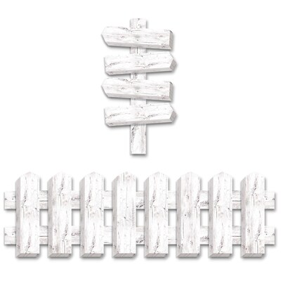 Bulletin boards and classroom displays will come alive with this 3D Pop Picket Fence Bulletin Board. The 3-D fence will literally pop off the wall to create a unique and creative display. The design has a feel of weathered wood, perfect for creating a farmhouse or rustic Decor theme in the classroom. The design's imagery of actual distressed wood gives this border a natural appearance, making it ideal for classrooms using the Reggio-Emilia approach in which the environment is the first teacher.Use this picket fence to create fun bulletin boards with these themes:• Create a "5 Little Pumpkins"-themed bulletin board for Halloween• Create a "Gateway to learning" bulletin board for back-to-school• Use the pieces to create a sign post• Create a seasonal bulletin board using this fence and a large tree as the anchor pieces. Decorate the fence with seasonal accents ?green vine and flowers for spring and summer, colorful leaves and a black crow or bat for fall, and fluffy cotton balls and student-made snowflakes for winter. Assembled fence measures: 93" (7.75') w x 9" h x 1" d