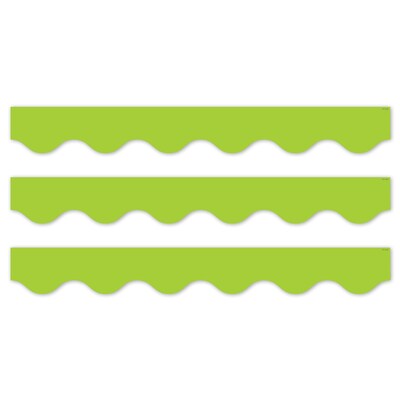 Frame your bulletin boards in style with this Lime Wavy EZ Border. Use the border by itself or layer it with another border for a unique look. Each package comes with enough borders to complete 2 full bulletin boards. Each pack includes 24 strips measuring 24" each for a total of 48 feet. Sold as 3 packs for a total of 72 strips (144 feet).