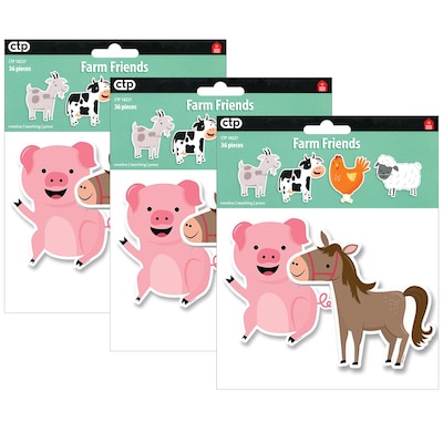 Creative Teaching Press Farm Friends 6" Designer Cut-Outs, 36 Per Pack, 3 Packs (CTP10227-3)