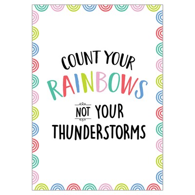 Add character and inspiration to any space with the thoughtful words and uplifting art on this Rainbow Doodles motivational poster. "Count your rainbows..." With their encouraging messages and bright colors, Inspire U motivational posters can be used in a school classroom, church, home, college dorm, or anywhere a little inspiration is needed. Poster measures 13 3/8" x 19".