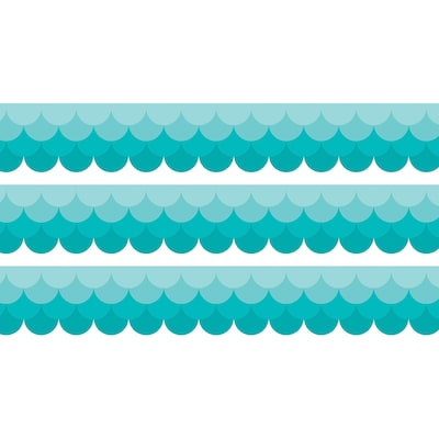 This bright Ombre Turquoise Scallops Border will trim any bulletin board display in style! The bright and colorful ombre turquoise stands out on this versatile bulletin board border that can be used not only in a classroom or at a school but also at an office, a college dorm, or an employee break room. Layer multiple borders to create a special pop in your classroom. These EZ borders come in smaller strips, which are easier to manage and store. Each package comes with Each pack includes enough borders to complete 2 full bulletin boards. Each pack includes 24 strips, each measuring 2-3/4" x 24", for a total of 48 feet per pack. Sold as 3 packs for a total of 72 strips (144 feet).