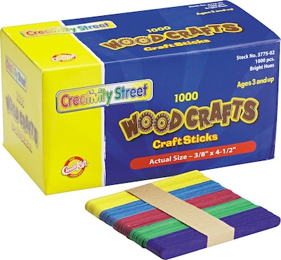 Creativity Street Company Colored Wood Sticks, (Popsicle) Size, Assorted, 4.5" x.38", 1,000/Bx