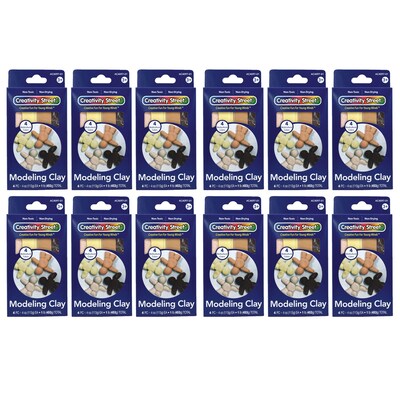 Permanently soft modeling clay is great for artists of all ages. Colors can be blended to create new colors! Each four color multicultural assortment pack includes 1/4 lb. sticks in each color and comes in a total of 1 lb. It is wrapped in poly and featured in a retail-friendly box with product viewing window. All modeling clays are non-toxic. Sold as 12 packs for a total of 12 lbs.