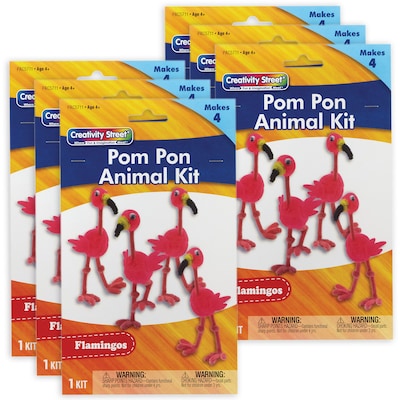 Creativity Street® Pom Pon Animal Kit, Flamingos, 2" x 2.75" x 5.25", 4 Flamingos Per Kit, 6 Kits (PACAC5711-6)