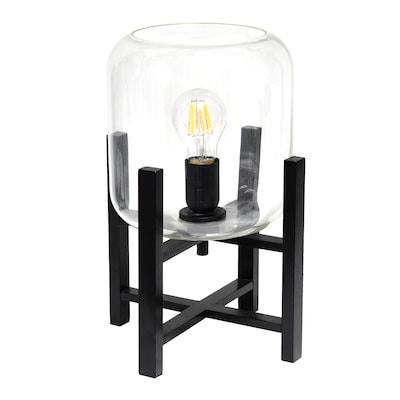 Add modern character to your home with this 13.5" industrial glass table lamp. Featuring a clear or smoky glass shade paired with a clean-line wood and metal base, this small but striking lamp brings an elevated edge to any décor. The exposed bulb design invites you to showcase your favorite Edison or filament-style bulb, casting a warm, ambient glow that is perfect for winding down or lighting up your workspace. Its compact footprint makes it ideal for nightstands, end tables, home office desks, or entryway consoles, wherever you want statement lighting without the bulk. Whether styled in a minimalist loft, a modern farmhouse, or a transitional guest room, this accent lamp blends contemporary charm with everyday functionality.