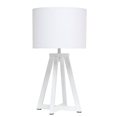 Bring stylish function to your space with this 19" tripod table lamp, designed to elevate both modern and transitional interiors. Its sleek geometric base and fabric drum shade create a clean, architectural silhouette that blends seamlessly into bedrooms, offices, and living rooms. Whether you are setting the mood in a reading nook or lighting your nightstand, this modern accent lamp casts a warm, inviting glow while serving as a standout design piece. Available in a variety of base and shade combinations (natural wood, white, gray, and black), this lamp is a versatile choice that adapts to any décor style, from minimalist to Scandinavian-inspired. With its compact footprint and thoughtful construction, this lamp brings form, function, and timeless charm to your home.