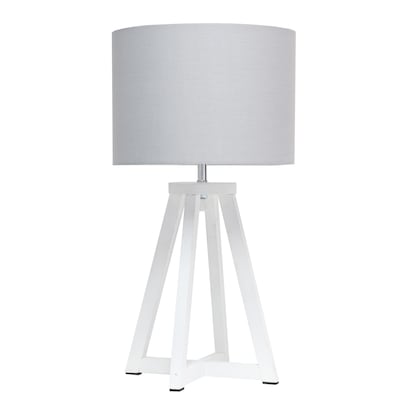 Bring stylish function to your space with this 19" tripod table lamp, designed to elevate both modern and transitional interiors. Its sleek geometric base and fabric drum shade create a clean, architectural silhouette that blends seamlessly into bedrooms, offices, and living rooms. Whether you are setting the mood in a reading nook or lighting your nightstand, this modern accent lamp casts a warm, inviting glow while serving as a standout design piece. Available in a variety of base and shade combinations (natural wood, white, gray, and black), this lamp is a versatile choice that adapts to any décor style, from minimalist to Scandinavian-inspired. With its compact footprint and thoughtful construction, this lamp brings form, function, and timeless charm to your home.