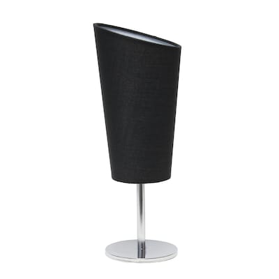 Creekwood Home 12.4" Chic Chrome Slanted Shade Accent Table Lamp, Stylish Lighting for Living Room, Bedroom, Office, Black Shade