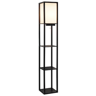 Creekwood Home Classix 62.5" Multifunctional 3-Tier Storage and Display Floor Lamp with Charging Ports & Outlet, for Living Room, Office, Bedroom, with Feit LED Bulb, Black