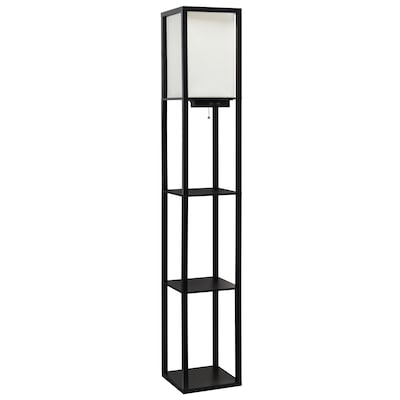 Creekwood Home Classix 62.5" Multifunctional 3-Tier Storage and Display Floor Lamp with Charging Ports & Outlet, for Living Room, Office, Bedroom, Black