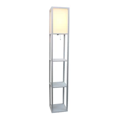 Creekwood Home Classix 62.5" Contemporary 3-Tier Storage and Display Floor Lamp with White Linen Shade, for Living Room, Office, Bedroom, with Feit LED Bulb, Gray