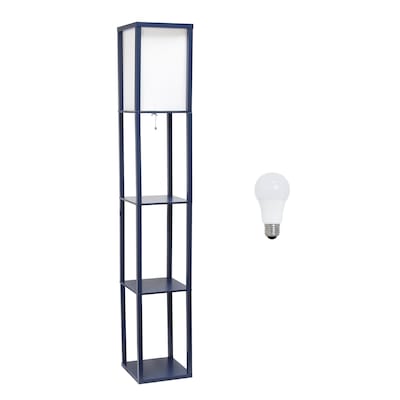 Creekwood Home Classix 62.5" Contemporary 3-Tier Storage and Display Floor Lamp with White Linen Shade, for Living Room, Office, Bedroom, with Feit LED Bulb, Navy Blue