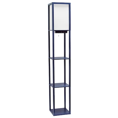 Creekwood Home Classix 62.5" Multifunctional 3-Tier Storage and Display Floor Lamp with Charging Ports & Outlet, for Living Room, Office, Bedroom, Navy Blue