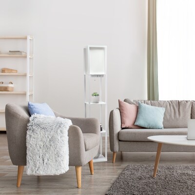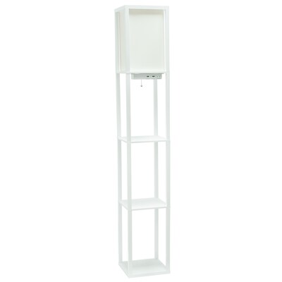 Creekwood Home Classix 62.5" Multifunctional 3-Tier Storage and Display Floor Lamp with Charging Ports & Outlet, for Living Room, Office, Bedroom, White
