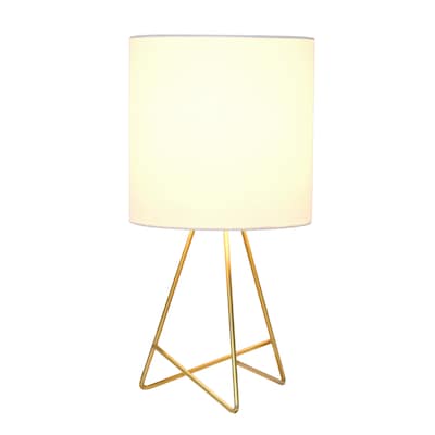 Creekwood Home Glamora 14" Modern Chic Wire Table Lamp, for Bedroom, Home Décor, with Feit LED Bulb, Gold with White Shade