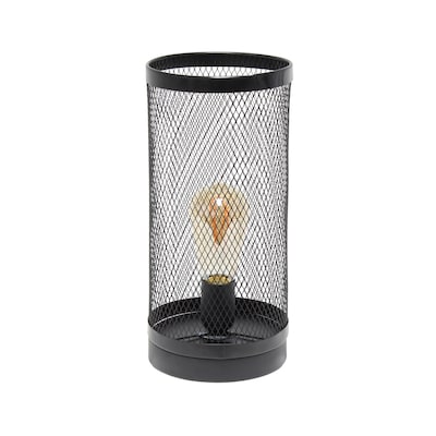 Creekwood Home Industrial Mesh Cylinder 12.75" LED Table Lamp, Black (CWT-1005-BK)