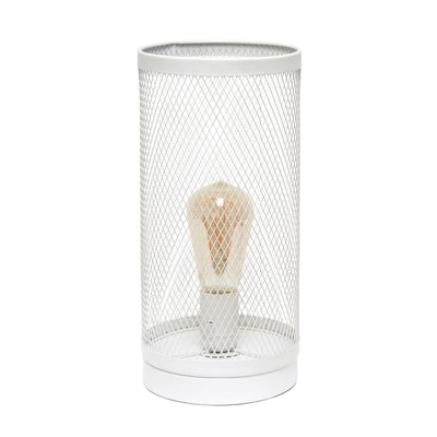 Creekwood Home Industrial Mesh Cylinder 12.75" LED Table Lamp, White (CWT-1005-WH)