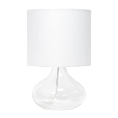 Creekwood Home 13.75" Modern Glass Accent Table Lamp, Stylish Lighting for Living Room, Entryway, Bedroom, Clear with White Shade