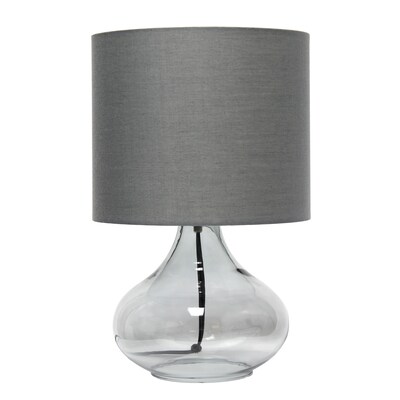 Creekwood Home 13.75" Modern Glass Accent Table Lamp, Stylish Lighting for Living Room, Entryway, Bedroom, Smokey with Gray Shade