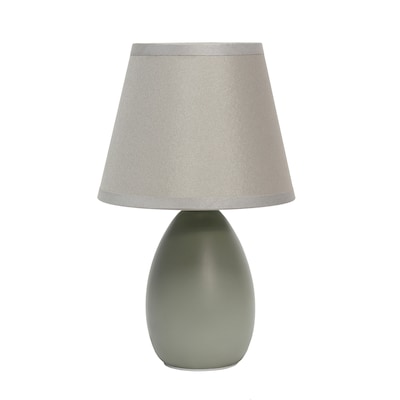 A petite table lamp made primarily of ceramic with its oblong base shape sits beneath a matching colored tapered fabric shade for an overall effortlessly styled lamp suited for both your décor and lighting needs. A number of color options are available in this style, to compliment your decor just right.